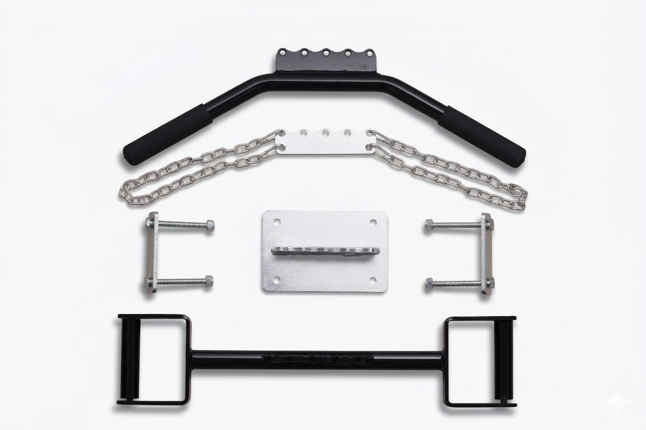 Wir präsentieren unsere neueste Innovation: ein Power-Rack-Attachment für Latzüge, Trizeps-Drücken und viele weitere Übungen.
